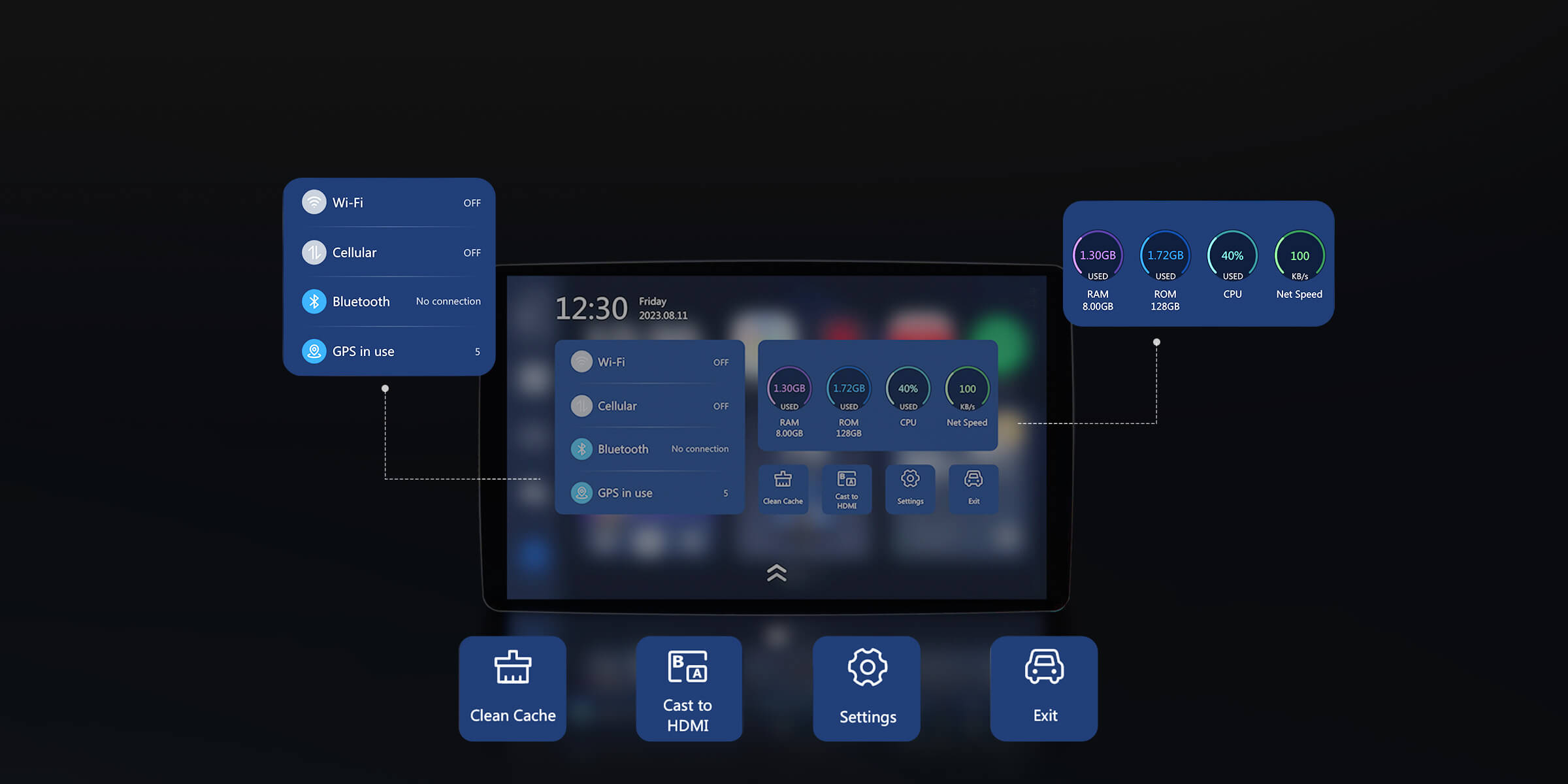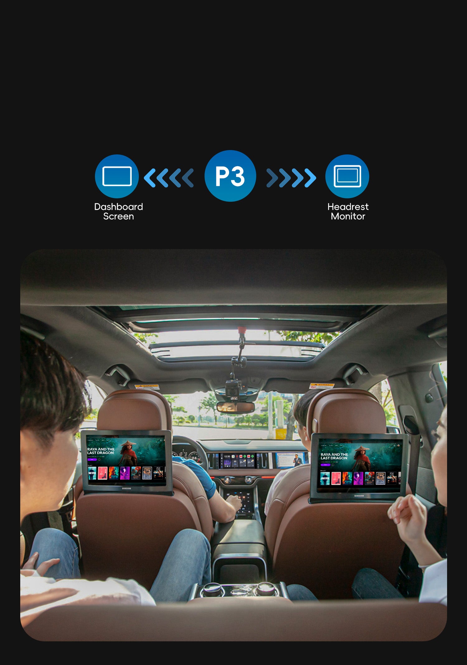 ✔Comparte la vista: proyecta tu panel directamente en la pantalla del reposacabezas