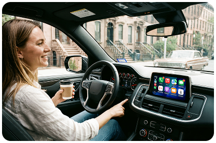 Cuando pasas a lo inalámbrico, la conducción se siente más suave y relajada, con tus apps, música y navegación siempre listas cuando tú lo estás.