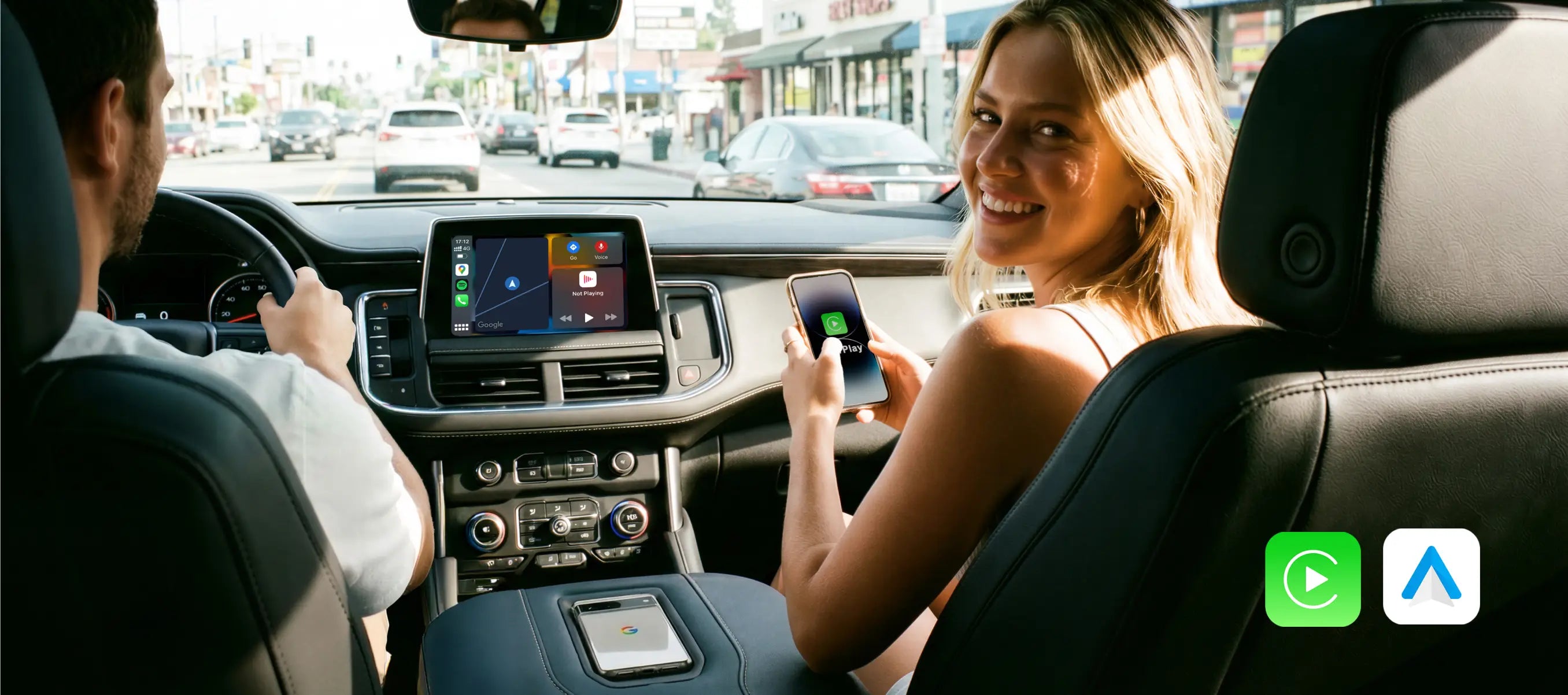 Disfruta de CarPlay y Android Auto de forma inalámbrica, como si vinieran integrados en tu coche.