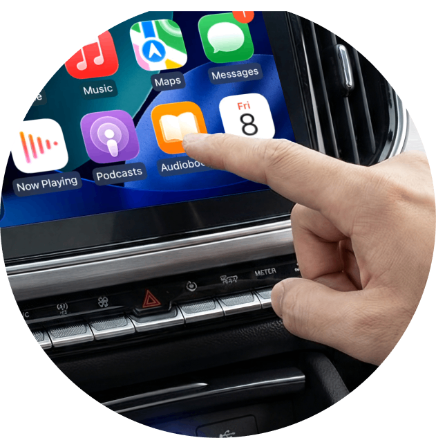 Tu coche cuenta con CarPlay con cable, por lo que está listo para nuestros productos.