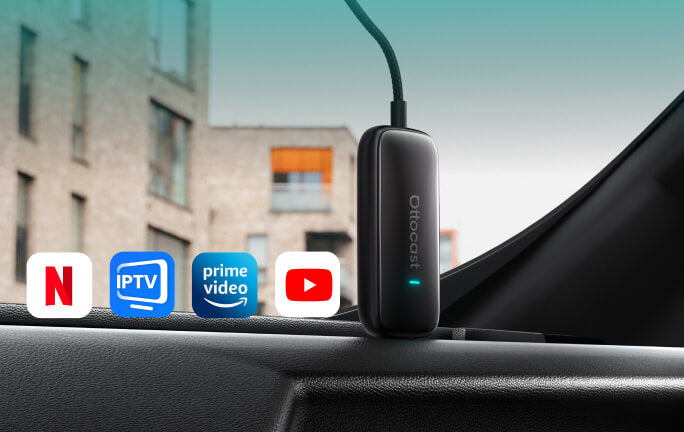Play2Video Ultra · Adaptador inalámbrico CarPlay/Android Auto con Netflix, YouTube, Prime Video y más